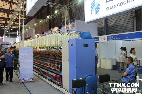 FA502環(huán)錠細紗機是本次展會上,山東同大集團主推的產(chǎn)品之一,該產(chǎn)品卷繞裝置采用自動升級結(jié)構(gòu),無需調(diào)換棘輪,就可保證管紗良好的成形。主軸采用三角帶,平皮帶和同步帶三種形式可供通用戶選擇。為保證產(chǎn)品運轉(zhuǎn)可靠、平穩(wěn),該產(chǎn)品還采用了同大自主研發(fā)的核心技術(shù),紡紗性能更優(yōu)。