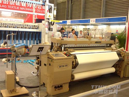 展示的兩臺噴氣織機,突出展示了天一紅旗紡機公司噴氣織機產品先進的設計、精良的制造和出眾的使用性能。看外觀,外觀穩(wěn)重大方,運轉速度高,運轉平穩(wěn),振動小,噪音低,宛如英俊硬朗的青年,既英俊又能干。選色最高可達8種緯紗,入緯率最高可達2200米/分鐘,廣泛適應棉、毛、絲、麻、化纖、玻纖等各個紡織行業(yè),織造品種廣,適應各種織物組織,特殊的光邊織造、分幅織造、上下雙層織物等也同樣能夠實現,此時又宛如一個心靈手巧的姑娘,能干而不嬌作。同時電子剪刀、自動潤滑,更加智能化人性化的電控操作界面,讓使用更方便直觀,省力省心。