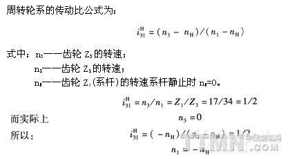 在絞邊齒輪Z4轉(zhuǎn)動并使行星齒輪Z1、Z1′公轉(zhuǎn)時,行星齒輪又被太陽齒輪Z3傳動而自轉(zhuǎn)。