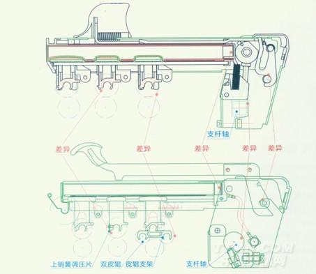 6、中皮輥握持處上銷簧壓力不能選擇,容易機(jī)械性出硬頭(吐粗紗)。