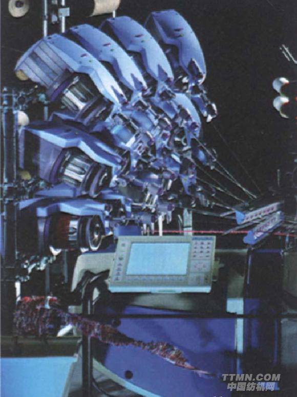 OMNIplus800 8—J260噴氣織機:8色緯紗,配備提花機,筘幅260cm,現(xiàn)場試織毛巾布。緯紗:Ne 14八棉紗,緯密:18根/cm;經(jīng)紗:Ne 24/2~Ne20/2棉紗,經(jīng)密:12.26根/cm;穿經(jīng)寬度235cm。主要技術特點包括:絨高可自由編程、8色緯紗織入、針輥保護、絨高控制裝置、Stiiubli提花機。