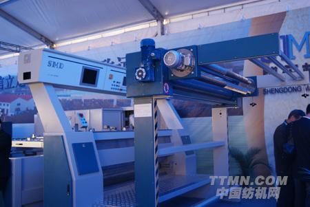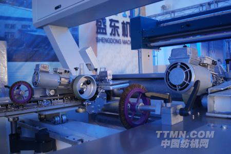 石:我們主要帶來(lái)了藍(lán)翔2010倍捻機(jī),這個(gè)產(chǎn)品現(xiàn)在我們做了一些改進(jìn),假捻機(jī)最主要的是多了一個(gè)假捻器和一個(gè)熱箱。這個(gè)假捻器是我們自己生產(chǎn)的,為了讓客戶以后維修帶來(lái)方便。熱箱這邊是我們控制系統(tǒng)增加了一個(gè)報(bào)警功能,和一個(gè)溫度自動(dòng)補(bǔ)償功能。這一點(diǎn)市場(chǎng)上原有的廠家里面我們是獨(dú)創(chuàng)的首先第一家。其他的像剎車(chē)的話也是重新設(shè)計(jì),然后皮帶盤(pán)后面,機(jī)尾上面也是多加了一個(gè)皮帶盤(pán)。為了我們以后的機(jī)器更加容易省電,還有增加絨帶的壽命。然后我們的主電機(jī)就從別人的第一代產(chǎn)品從11kW,減到了7.5kw。我們的整體機(jī)身比原先的機(jī)身下降了14公分。為了便于我們客戶那邊招工方便。就是這些優(yōu)勢(shì)。