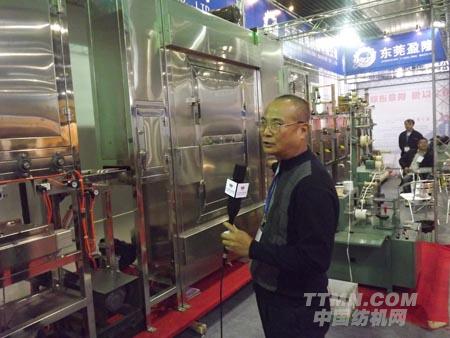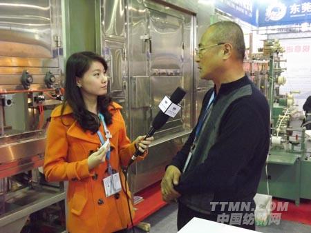 (圖為中國(guó)紡機(jī)網(wǎng)記者在采訪(fǎng)東莞盈隆機(jī)械的黃總 中國(guó)紡機(jī)網(wǎng)(TTMN.COM)攝)
