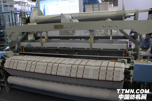 在這場名企云集的盛會上,紡機(jī)競爭可謂異常激烈,而浙江越劍機(jī)械制造有限公司卻能脫穎而出,到底有何法寶呢?讓我們前去一探究竟。據(jù)現(xiàn)場工作人員介紹,此次推出的YJ737B200電腦毛巾劍桿織機(jī),憑借優(yōu)越的性能很受觀眾青睞,該機(jī)采用凸輪式活動筘起毛方式,起毛可靠柔和,毛圈高度調(diào)節(jié)方便。加粗的打緯軸確保了打緯機(jī)構(gòu)有足夠的剛性,能織造門幅2800以上寬幅毛巾。獨(dú)創(chuàng)的懸浮式窄軌道設(shè)計(jì),減少了軌道片對經(jīng)紗的摩擦,降低經(jīng)紗斷頭。而優(yōu)質(zhì)高速碳素纖維劍頭的使用,明顯降低斷緯,大幅延長了劍頭的使用壽命。同時(shí)自動尋緯裝置的運(yùn)用,使本機(jī)具有了自動尋緯功能和防緯檔功能,大大方便了擋車工的操作。