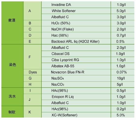 染色工藝配方: