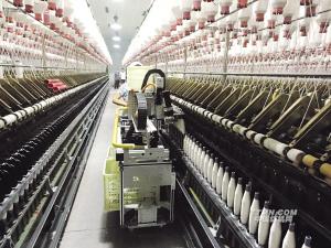 松寶S9型智能落紗機(jī)在武漢江南實(shí)業(yè)集團(tuán)使用現(xiàn)場。