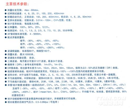 本均勻度儀是一集數(shù)據(jù)、計(jì)算機(jī)信號(hào)處理于一體的高科技產(chǎn)品,該儀器可迅速測(cè)定條粗的各項(xiàng)不均指標(biāo)值,提示不良工藝,儀器操作簡(jiǎn)單,功能齊全、工作界面友好,并具有檢測(cè)、保存、打印、查詢多項(xiàng)功能,它波譜圖光滑、無(wú)虛假波峰,機(jī)械波、牽伸波特征好,易于識(shí)別。波譜圖各通道的波長(zhǎng)可直接由光標(biāo)引導(dǎo)讀取數(shù)值,可滾動(dòng)顯示采樣曲線,便于全面研究分析紗線粗細(xì)變化的特點(diǎn)。由離散圖可獲得試樣粗細(xì)變化偏移的差異。每一樣檢測(cè)結(jié)果可保存到數(shù)據(jù)庫(kù)中。在任何時(shí)候都可對(duì)歷史數(shù)據(jù)實(shí)現(xiàn)條件組合查詢,CV值排序、波譜圖顯示,成組打印等操作。