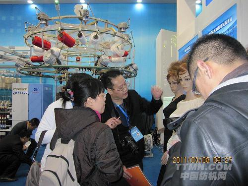 圖為協(xié)會領導向參觀者介紹無縫內衣機