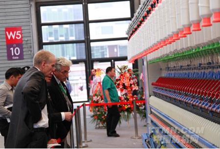 2012國際紡機展展會上,同和紡機公司重點展出了TH578J緊密紡自動落紗細紗機、TH498智能、高速集體落紗粗紗機等設備。