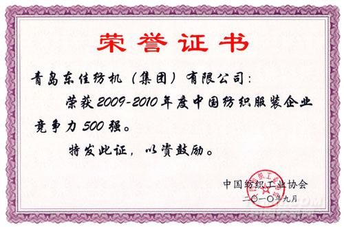 日前,中國紡織工業(yè)協(xié)會在浙江省海寧市勝利閉幕的2009-2010年度中國紡織服裝企業(yè)競爭力500強(qiáng)發(fā)布會上,公布了“2009-2010年度中國紡織服裝企業(yè)競爭力500強(qiáng)”。 青島東佳紡機(jī)(集團(tuán))有限公司以其良好的經(jīng)營業(yè)績名列其中。