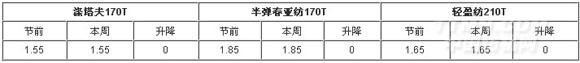 首先介紹一下:一周里料常規(guī)品種價(jià)格走勢(shì)對(duì)比表 元/米