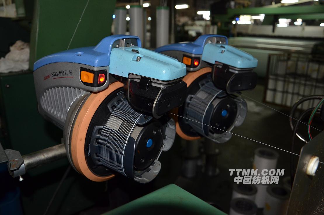 驅(qū)車來到紹興某紡織有限公司,該公司負責(zé)設(shè)備管理的梁先生盛情接待了我們,在生產(chǎn)車間考察新產(chǎn)品SHJ-P的運行情況, SHJ-P在2012年2月開始投入到該公司使用,一直正常的在運行。該產(chǎn)品外觀時尚,采用永磁電機,反應(yīng)更敏捷,節(jié)能更卓越,能輕松應(yīng)對各種復(fù)雜花樣。釋放緯紗采用光電傳感器計圈,定長更可靠,能巧妙應(yīng)對干擾信息。整體密封設(shè)計、防水、防塵更有效,能沉著應(yīng)對惡劣環(huán)境。改進的等離子噴涂層,超強的吸附力,能頑強應(yīng)對紗線和漿料的折磨。磁感應(yīng)操作開關(guān)可靠又好操作,徹底解決了前一代儲緯器薄膜開關(guān)易損的缺憾。