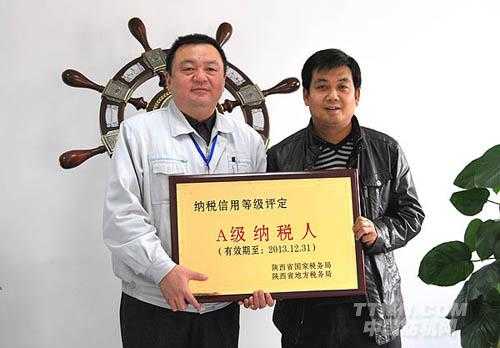日前,公司被陜西省國(guó)家稅務(wù)局和地方稅務(wù)局共同授予“陜西省2012-2013年度納稅信用等級(jí)A級(jí)納稅人”稱號(hào)。紡電公司連續(xù)第三次獲此殊榮。寶雞市國(guó)家稅務(wù)局、地方稅務(wù)局有關(guān)領(lǐng)導(dǎo)來我公司親自頒授“納稅信用等級(jí)A級(jí)納稅人”銅牌。