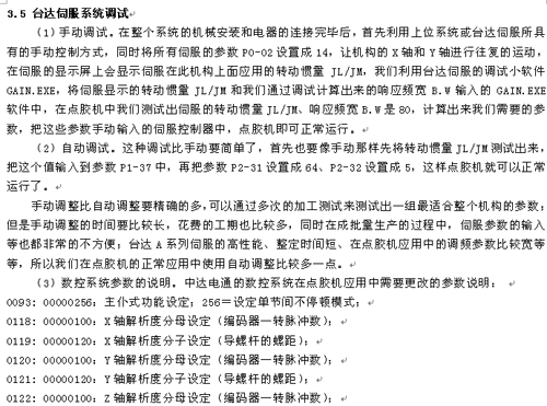 摘 要: 本文主要介紹中達(dá)電通的數(shù)控系統(tǒng)PUTNC-H4-4和A系列伺服在手機塑殼生產(chǎn)線上的重要設(shè)備點膠機的成功應(yīng)用。應(yīng)用數(shù)控系統(tǒng)控制原理,根據(jù)中達(dá)電通數(shù)控產(chǎn)品特點對伺服調(diào)試及相關(guān)參數(shù)深入論述。