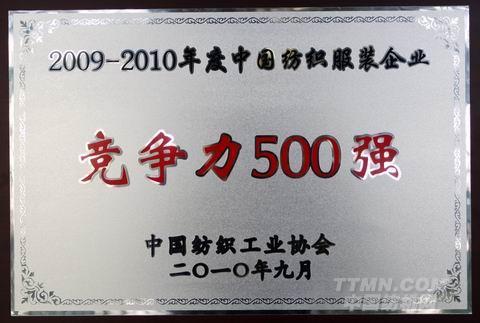 2010年9月19日,“2009~2010年度中國(guó)紡織服裝企業(yè)競(jìng)爭(zhēng)力500強(qiáng)發(fā)布會(huì)” 在浙江海寧海洲大酒店隆重舉行,陜西寶成航空精密制造股份有限公司獲得了中國(guó)紡織服裝企業(yè)競(jìng)爭(zhēng)力500強(qiáng)企業(yè)的殊榮,公司董事長(zhǎng)賀武銀受邀出席了此次大會(huì)并代表公司接受了頒獎(jiǎng)。