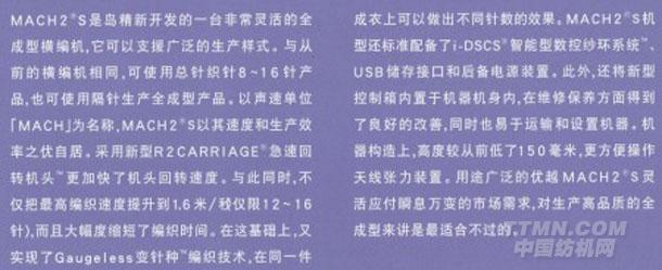 MACH2S全成型電腦橫編機 最適合于開拓市場