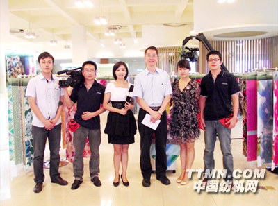 (圖/中國(guó)紡機(jī)網(wǎng)“紡機(jī)智造”欄目攝制組與長(zhǎng)勝紡織陳董合影)