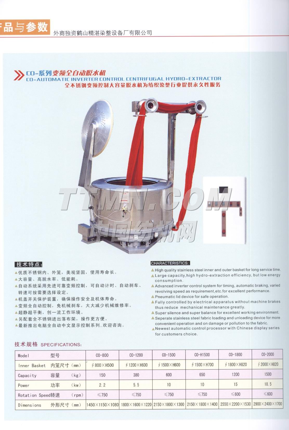 廣東鶴山精湛染整設備廠成功研發(fā)自動散纖維脫水機