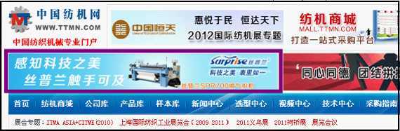 硬廣告?zhèn)鞑?br />中國紡機網(wǎng)首頁首屏旗幟Banner廣告