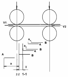 設(shè)1-1截面為A纖維頭端的變速點(diǎn),2-2為B纖維頭端的變速點(diǎn),X為兩變速截面的距離。