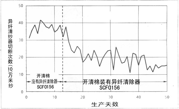 第三種、電子清紗器清除異纖:烏斯特公司研制開(kāi)發(fā)了Uster Quantam Clearer異纖電子清紗裝置,這些電子清紗器安裝在自動(dòng)絡(luò)紗機(jī)上,實(shí)現(xiàn)了對(duì)原紗逐毫米的檢驗(yàn)、清紗、清除異纖,形成紡紗全過(guò)程完整的電子清除異纖系統(tǒng)。他們對(duì)以上三種方法做了關(guān)于清除異纖的試驗(yàn),試驗(yàn)結(jié)討論果如下: