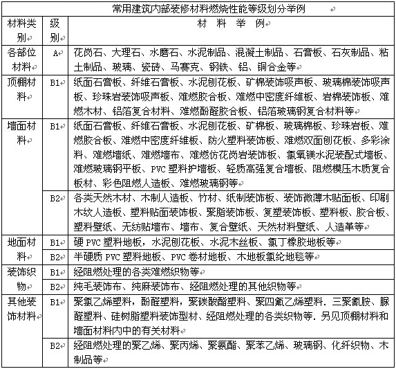 展覽用常用建筑內(nèi)部裝修材料燃燒性能等級劃分