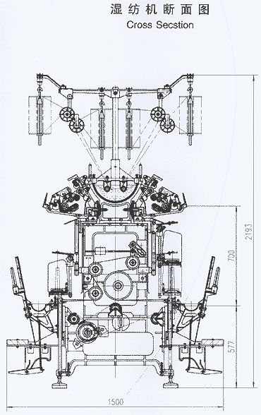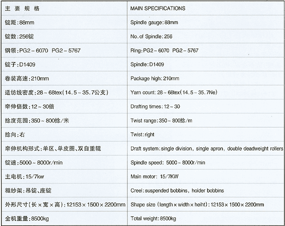 主傳動(dòng)通過(guò)主軸,傳動(dòng)直徑ф204毫米的滾盤帶動(dòng)錠子運(yùn)轉(zhuǎn),中墻板采用框式結(jié)構(gòu),E型龍筋,角尺型機(jī)梁,緊湊穩(wěn)固,機(jī)架重心低,剛性好。