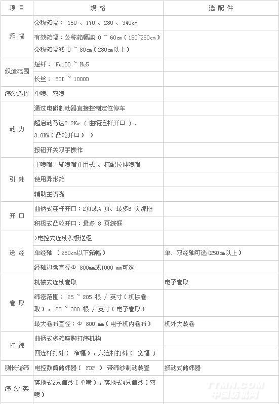 采用專門適應(yīng)玻纖紗線的儲(chǔ)緯器、主噴嘴、輔噴嘴和牽伸噴嘴等引緯部件使之適應(yīng)玻纖紗線的引緯需要,減輕了對(duì)玻纖緯紗的損傷,同時(shí)也降低紗線對(duì)引緯部件的磨損,延長(zhǎng)使用壽命。