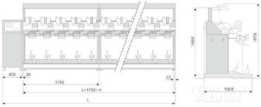 倍捻機的前道設備,把不同的規(guī)格的原料筒子并合成可在倍捻機上加工的平行筒子,并合提供氨綸絲與其他紗線的并合功能。