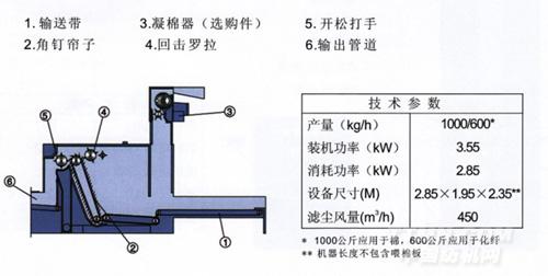 4、喂棉機的輸送簾子長達2.5-7.5米,可滿足各種產量要求