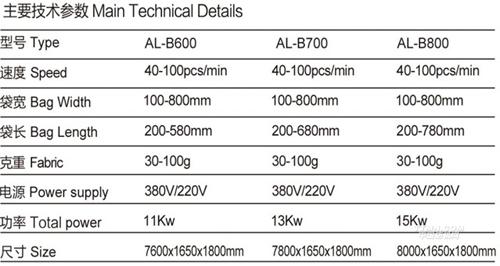 該機(jī)適用原材料為無紡布,能加工各種不同規(guī)格,不同形狀的無紡布袋,平口袋,手提袋,背心袋,穿繩袋等。該機(jī)集機(jī)電為一體,運(yùn)用LCD觸摸屏操作,配以步進(jìn)定長,光電跟蹤,電腦定位,自動(dòng)糾偏,自動(dòng)計(jì)數(shù),自動(dòng)報(bào)警,連續(xù)打孔等工控裝置,使其生產(chǎn)的成品封線牢固,切線美觀,是您可以放心選用的優(yōu)質(zhì)環(huán)保型制袋設(shè)備。