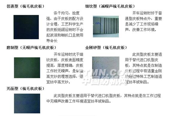 天津靖隆橡膠有限公司生產(chǎn)的皮板工裝齊全。可制作國產(chǎn)機(jī)型、進(jìn)口機(jī)型各種規(guī)格普通型、細(xì)紋型、磨制帶槽型磨制光面型、金剛砂型皮板使用各種紡紗要求,毛紗出條捻度強(qiáng),條干均勻,對成紗毛條真正做到了光、圓、緊。配方設(shè)計(jì)合理、皮板挺闊、伸長小,不溶脹、長時(shí)間使用不起波浪,不會形成喇叭口,提高成紗質(zhì)量。
