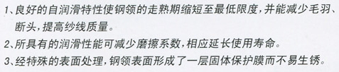 我公司是棉紡平面鋼領(lǐng)的專業(yè)化生產(chǎn)企業(yè),是全球最大的鋼領(lǐng)生產(chǎn)、銷售企業(yè)。產(chǎn)品采用優(yōu)質(zhì)碳素鋼、鈦合金、軸承鋼、高精度軸承鋼等不同材質(zhì),表面處理有光面、鍍鉻、鍍膜、微晶、硫化等多種不同工藝的處理,能滿足客戶的不同使用要求。產(chǎn)品適用于環(huán)錠細紗機上紡棉、化纖、棉與化纖混紡的各種紗支的紗線。產(chǎn)品年銷售量達3500萬只左右,國內(nèi)市場占有率達30%,居國內(nèi)同類生產(chǎn)廠家之首,目前已擁有1000多個國內(nèi)外棉紡、整機客戶,并出口東南亞、中東等地區(qū),出口占總銷量的35%,占國內(nèi)同類產(chǎn)品出口總量的90%。“航月牌”棉紡平面鋼領(lǐng)深受國內(nèi)外用戶的廣泛贊譽,企業(yè)多年來榮獲省、市文明單位、科研型企業(yè)、資信AAA級等榮譽稱號。