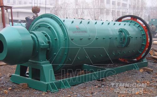 本球磨機為臥式筒形旋轉裝置,外沿齒輪傳動,兩倉,格子型球磨機。物料由進料裝置經(jīng)入料中空軸螺旋均勻地進入磨機第一倉,該倉內有階梯襯板或波紋襯板,內裝不同規(guī)格鋼球,筒體轉動產生離心力將鋼球帶到一定高度后落下,對物料產生重擊和研磨作用。物料在第一倉達到粗磨后,經(jīng)單層隔倉板進入第二倉,該倉內鑲有平襯板,內有鋼球,將物料進一步研磨。粉狀物通過卸料箅板排出,完成粉磨作業(yè)。