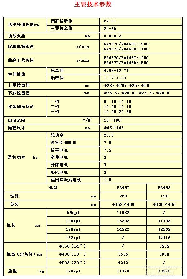 FA467D、FA468D是在FA467C、FA468C的基礎(chǔ)上,將錠翼及筒管傳動(dòng)方式由齒輪傳動(dòng)改為同步帶傳動(dòng),提高紡紗效率,降低整機(jī)噪聲。