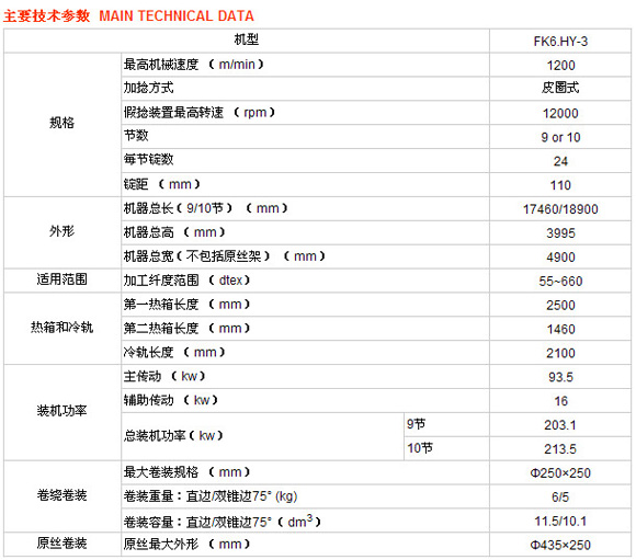 FK6.HY-3型高速彈力絲機(jī)采用皮圈假捻方式,其適紡范圍為33~660dtex,最高機(jī)械速度為1200m/min。