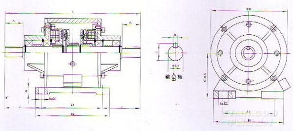 將電磁離合器及制動器改進輕合金制外殼內,是為一防滴型、分軸式離合器