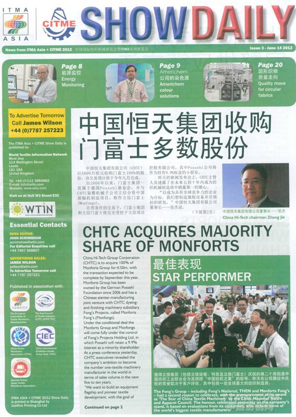 Another important news, CHTC chairman Mr. Zhang Jie announced CHTC is to acquire 100% of Monforts Group, with the transaction expected to be complete by September this year and said that CHTC want to build an equipment flagship and pioneer textile development, with the goal of becoming and internationally competitive enterprise.
