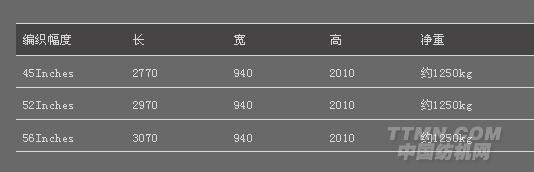| 編織幅度 | 45、52、56 (英寸); |
