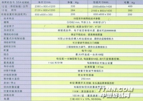 松筒S系列絡(luò)筒機(jī)技術(shù)參數(shù)