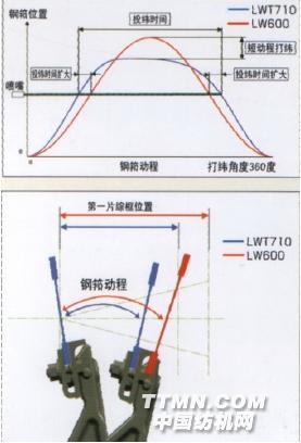 b.采用短動(dòng)程打緯,同時(shí)兼顧了引緯時(shí)間和打緯性能,縮短織口到綜框的距離,有利于高支高密織物織造。新老打緯機(jī)構(gòu)動(dòng)程對(duì)比見(jiàn)圖 5—26;