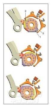 該裝置是 1款通用型積極式旋轉(zhuǎn)多臂裝置,適用于劍桿、噴氣或片梭織機。其工作原理如下圖所示。