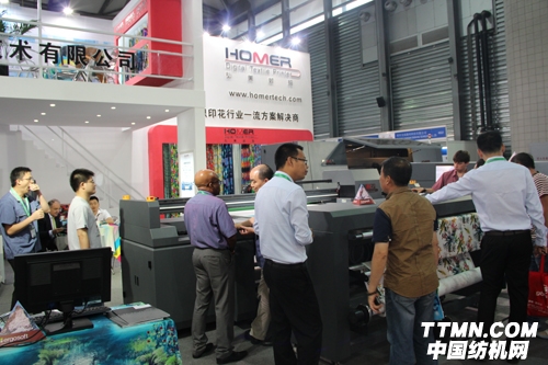 深圳弘美數(shù)碼紡織技術有限公司對此次展會予以高度重視,展示了公司的全系列產(chǎn)品,包括HM1800S工業(yè)級數(shù)碼印花機(產(chǎn)量可達90平米每小時,3pass),HM1800工業(yè)級中速數(shù)碼印花機(產(chǎn)量可達180平米每小時,3pass),并首次展出了弘美最新研發(fā)的HM1800L工業(yè)級高速數(shù)碼紡織印花機,其配備16個高精工業(yè)噴頭,實際產(chǎn)量高達400平米每小時(3pass),并且在機械設計,運動系統(tǒng)以及氣墨路系統(tǒng)等功能方面均有重大更新,使其能夠完全適應大批量的連續(xù)生產(chǎn)需求。