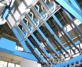 ■喂入羅拉 兩列羅拉軸,配有鍍鉻鋼質羅拉、鋁質加壓臂和皮輥或皮圈,包容性好。一羅拉位于原絲架附近,在切絲器和 上熱箱之間。二羅拉裝在假捻器的后面。 機器還配有防疊移絲機構,動程為10mm,防止皮輥或皮圈受損。
