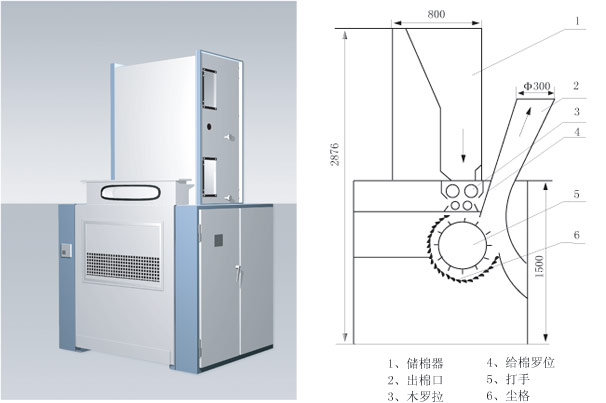 刺輥底部設(shè)除塵刀、預(yù)分梳板、吸口、落棉量調(diào)節(jié)板;