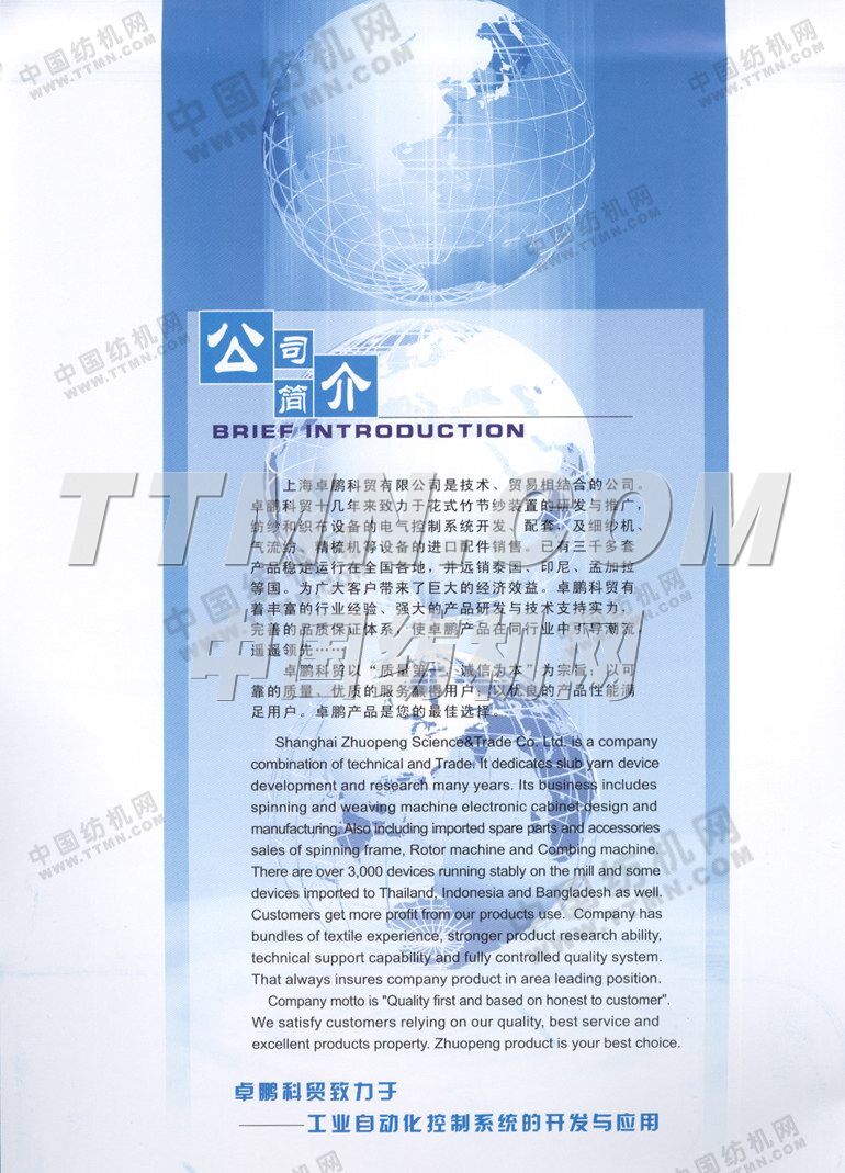 您所在的位置:紡機網(wǎng) > 紡織機械樣本庫 > 上海卓鵬科貿(mào)有限公司