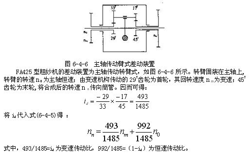 在變速傳動轉(zhuǎn)臂式差動裝置中,id為恒速傳動比,1-id為變速傳動比。雖然差動裝置的類型不同,但所起的作用是一樣的。由主軸和變速裝置傳來的速度,經(jīng)差動裝置合成后傳向筒管,變速裝置只負擔(dān)其中一小部分的轉(zhuǎn)速,而絕大部分的速度是由主軸來承擔(dān)的。