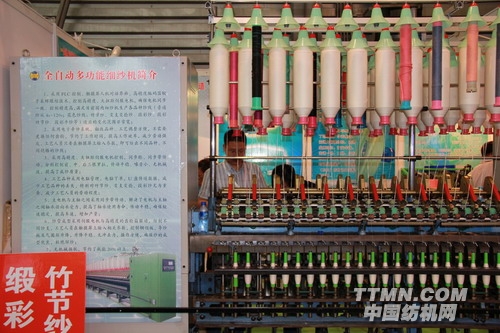 在本屆紡機(jī)展上,南通金馳機(jī)電有限公司展出的多電機(jī)細(xì)紗機(jī)也許是史無前例!該細(xì)紗機(jī)的傳動(dòng)機(jī)構(gòu)取消了車頭齒輪、渦輪箱、棘輪等復(fù)雜的傳動(dòng)機(jī)構(gòu),而是采用伺服電機(jī)分別傳動(dòng)前、中、后三根羅拉,采用此機(jī)構(gòu)后,該細(xì)紗機(jī)有以下幾個(gè)優(yōu)點(diǎn):