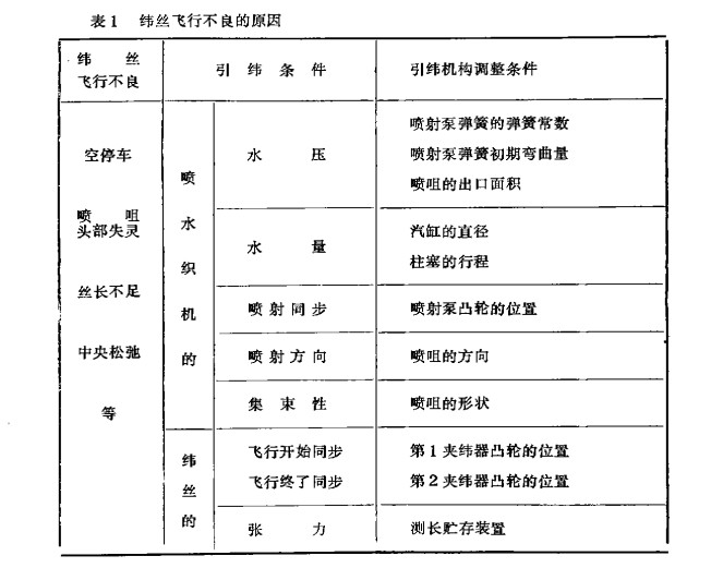 所以當上述引緯機構(gòu)發(fā)生緯絲飛行不良時,可參照表l所示引緯機構(gòu)調(diào)整條件,和引