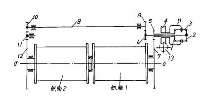 在無梭織機(jī)上,由于經(jīng)紗高張力的原因,送經(jīng)機(jī)構(gòu)實(shí)質(zhì)上是一個(gè)放經(jīng)機(jī)構(gòu),經(jīng)紗放出的原動(dòng)力來自經(jīng)紗張力,送經(jīng)機(jī)構(gòu)只起著控制織軸經(jīng)紗放出量的作用。在圖10-22中,蝸桿13的回轉(zhuǎn)角度控制著織軸的經(jīng)紗放出量。